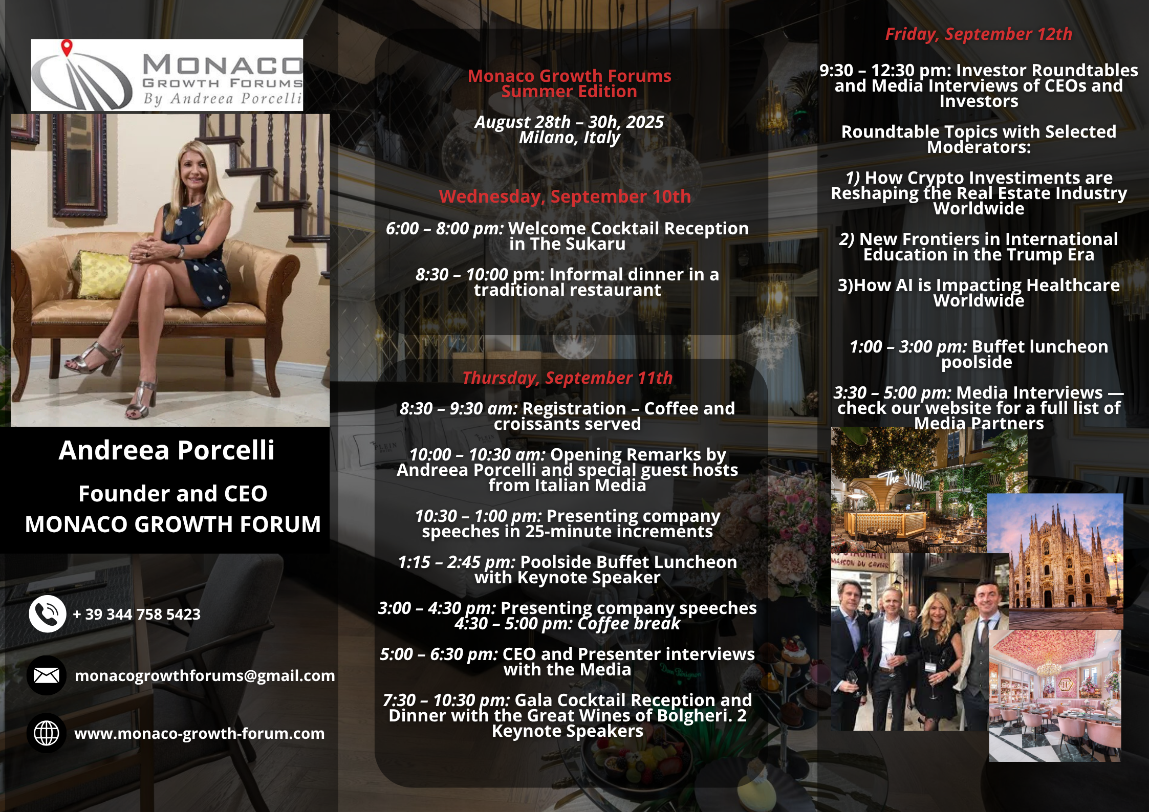 Andreea Porcelli Welcomes You Back to Monaco Growth Forums with a Dual City Forum!